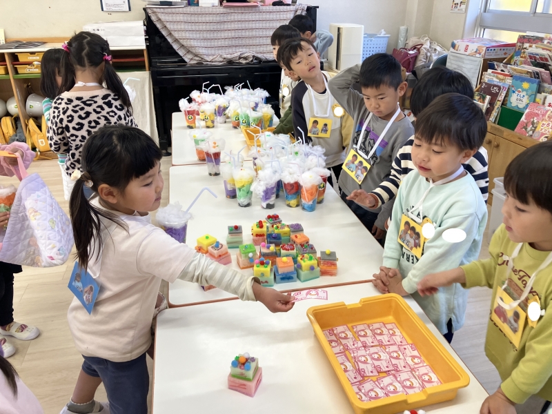 学年をこえてペアになり、わくわくのお買い物ごっこ!
