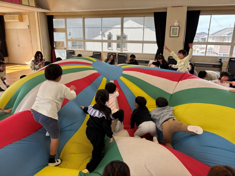 バルーンで遊んだりと、幼稚園最後の思い出づくりを