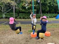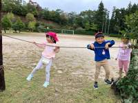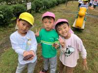 雨が今にも降りそうだった曇り空も、子どもたちの元気な笑顔で雨雲は吹き飛び、日がさし込む園庭となりました。