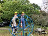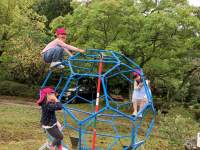 公園の遊具では、ジャングルジムに登って“山のぼり名人”になった子、